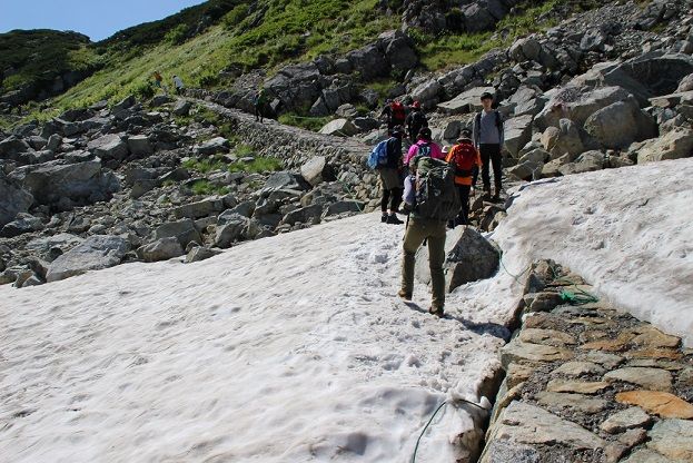 石畳を歩きながら、一の越山荘へ