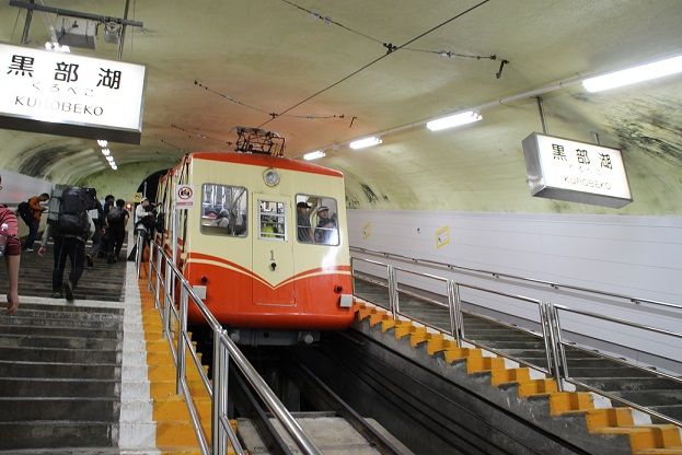 室堂から、電気バスを乗り、ロープウェイ、ケーブルカー、電気バスと帰りは観光客がいっぱいです。