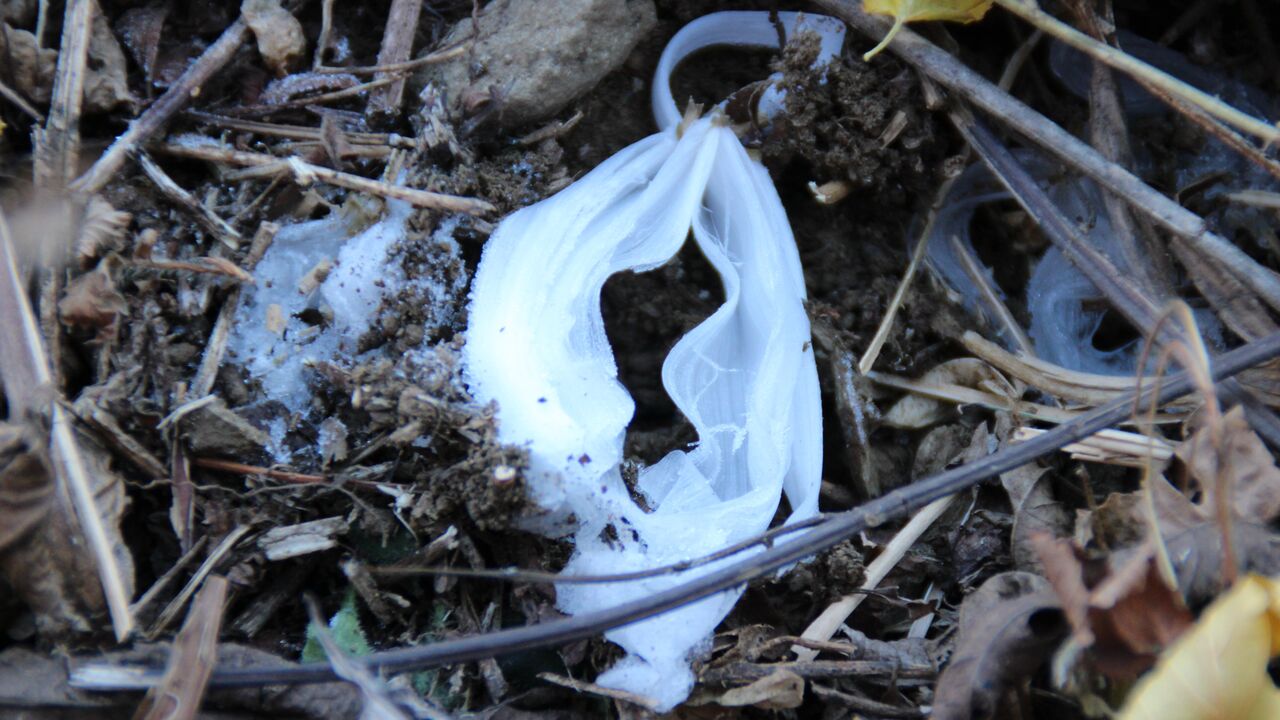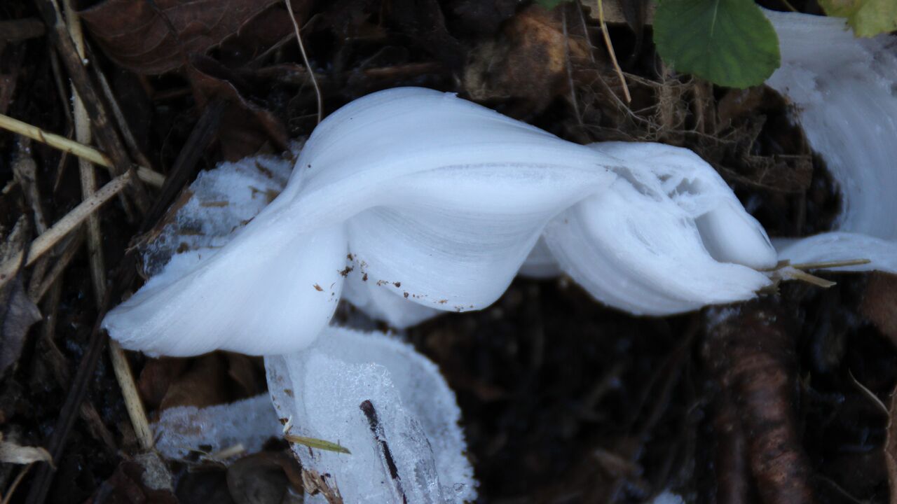 冬には地上部は枯れてしまうのですが、根は生きていて茎から氷が発生するんです~